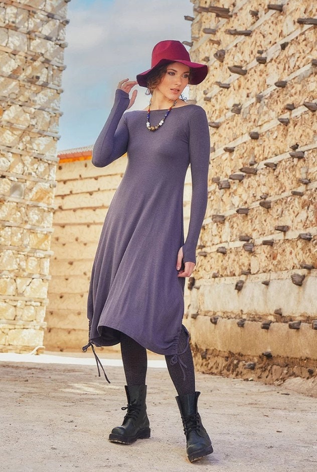 It is a long length and long sleeve dress with very light cozy fabric.