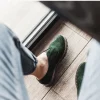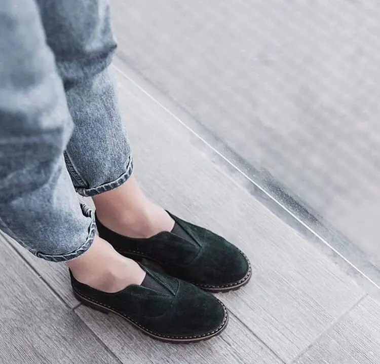 Step into elegance with our womens laceless green velvet/suede Oxford shoes. Designed for those who appreciate a luxurious touch, these laceless Oxfords exude sophistication and style. Made from high-quality green velvet, these shoes offer a unique and glamorous twist to the classic Oxford silhouette. The absence of laces adds a sleek and effortless appeal, making them perfect for both formal occasions and adding a chic touch to your everyday outfits. The lush velvet material not only adds a touch of opulence but also provides a comfortable and snug fit. Elevate your footwear game with our exquisite green velvet laceless Oxford shoes, and make a statement wherever you go. Key features: 1. Crafted in our workshop in Kyiv.