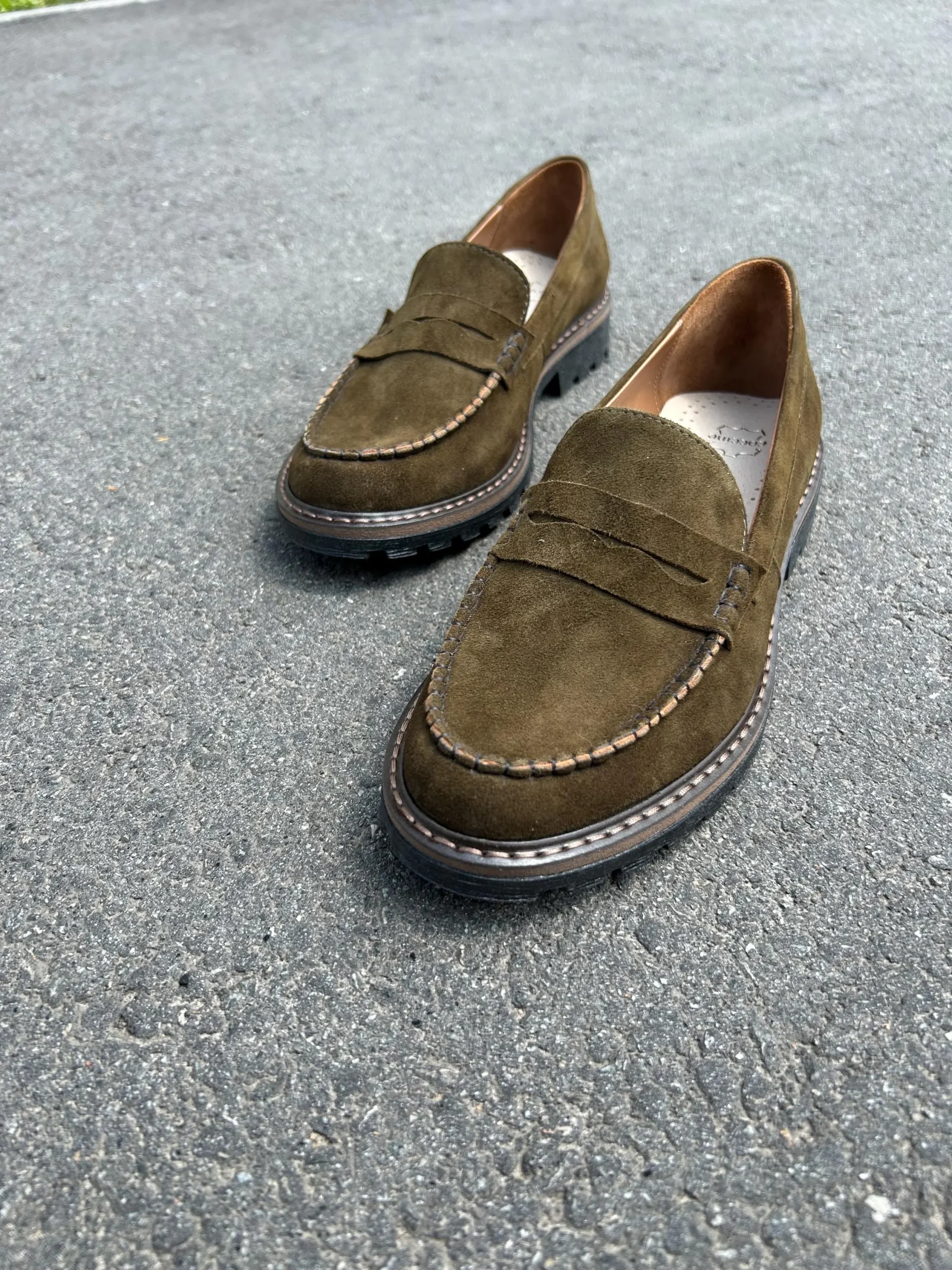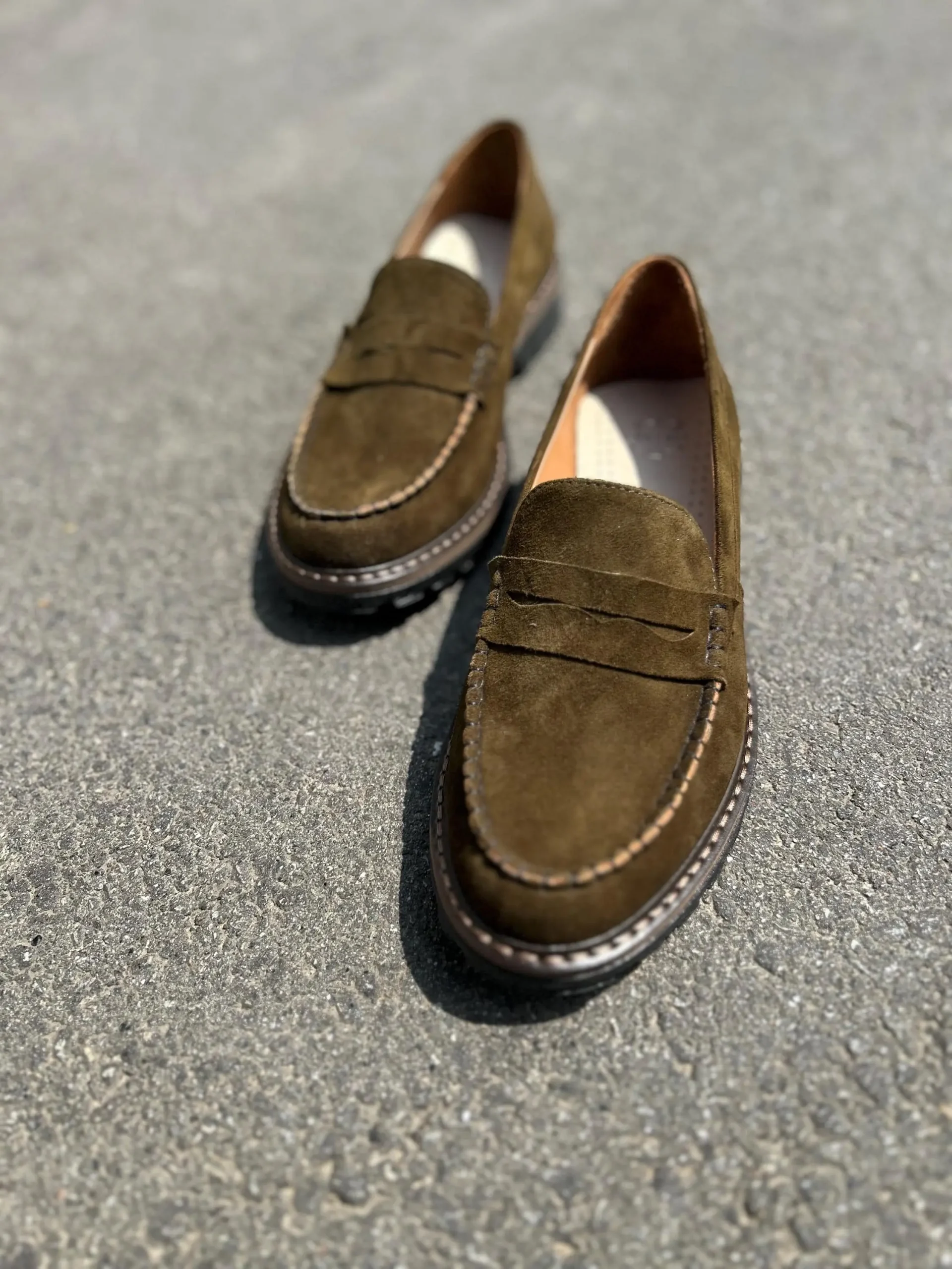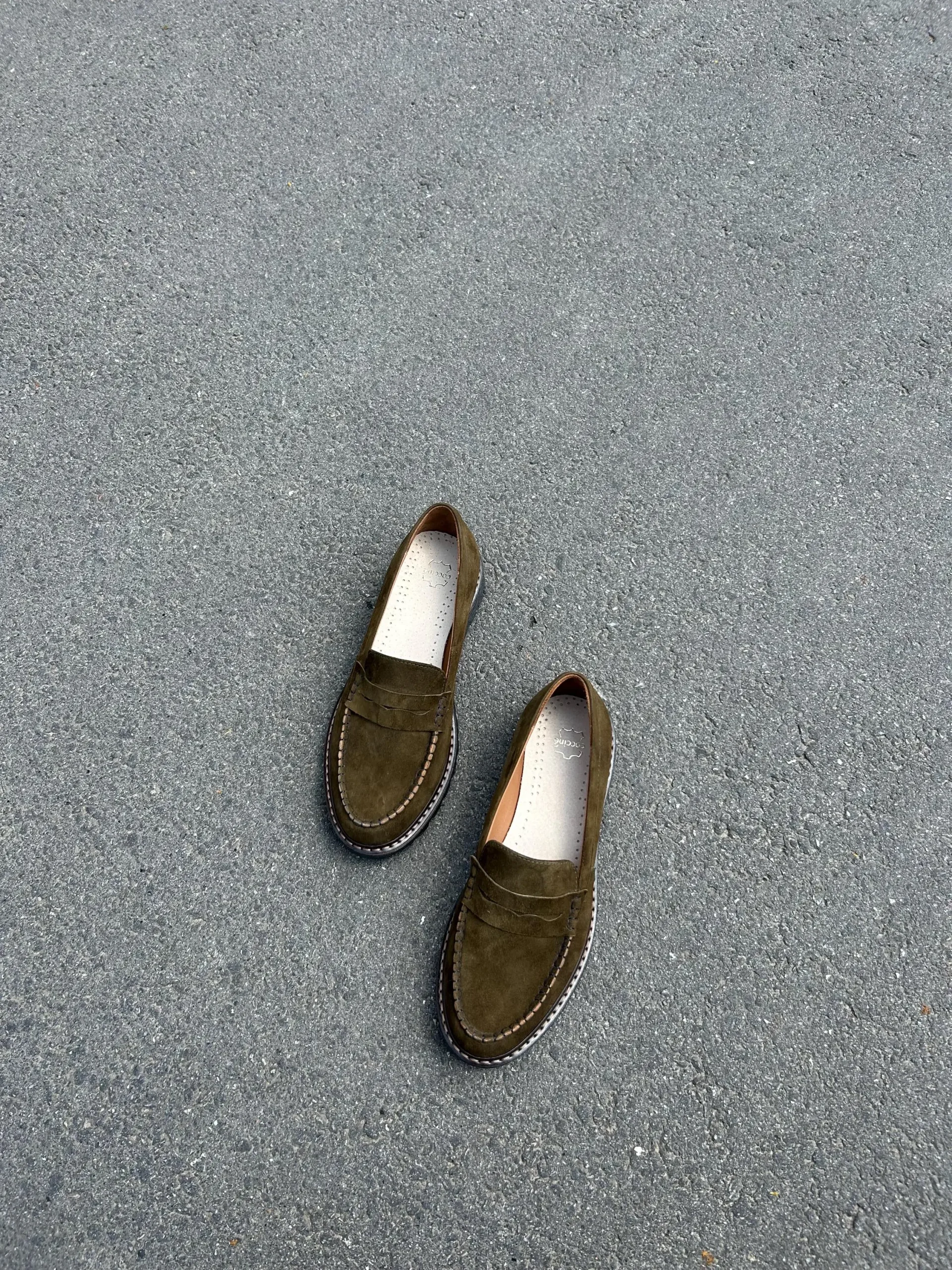 Be the first to review “Olive Suede Penny Loafers for Women”