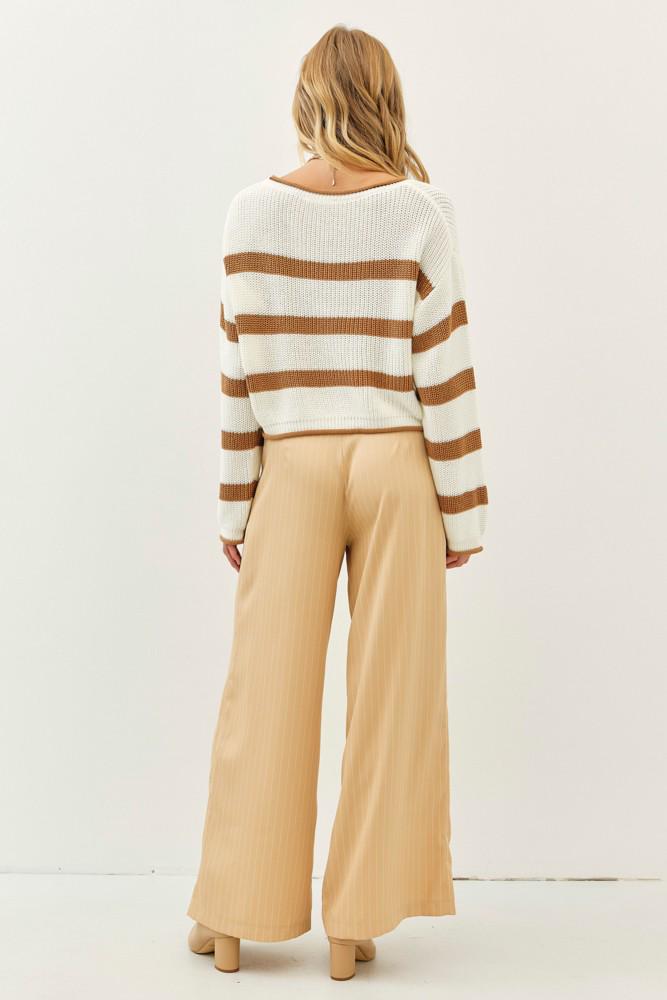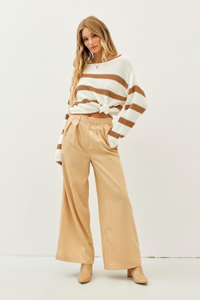 Wrap yourself in all-day comfort with this super soft, best-loved sweater—a perfect blend of cozy and chic. Designed with a relaxed oversized fit, this striped knit pullover features long sleeves, a classic boat neckline, and subtle contrast detailing at the edges for a touch of something special.