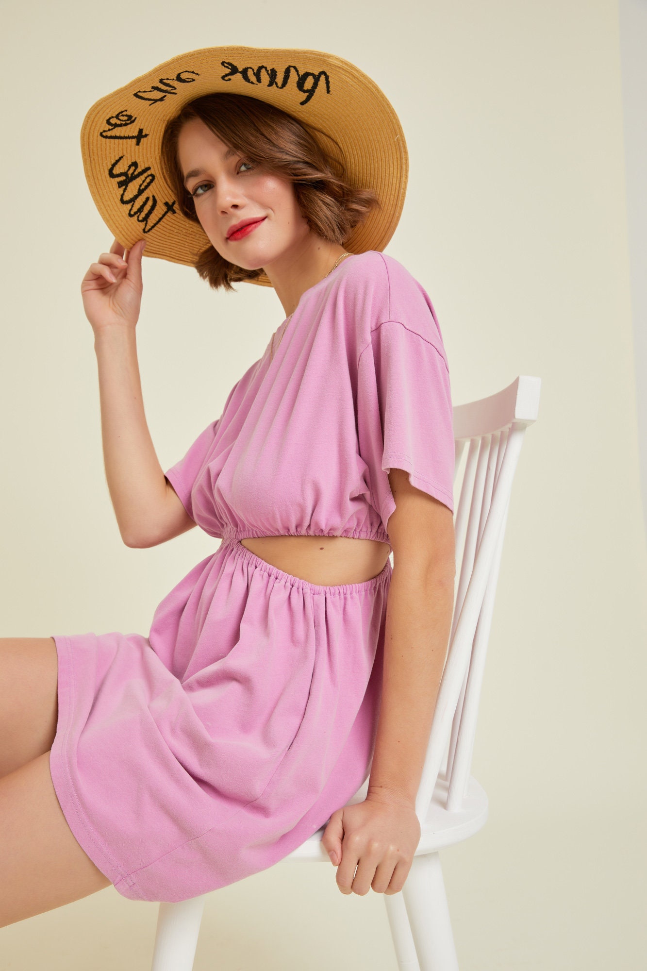 Be the first to review “Washed Cotton Mini Dress T Shirt Style Cutout”
